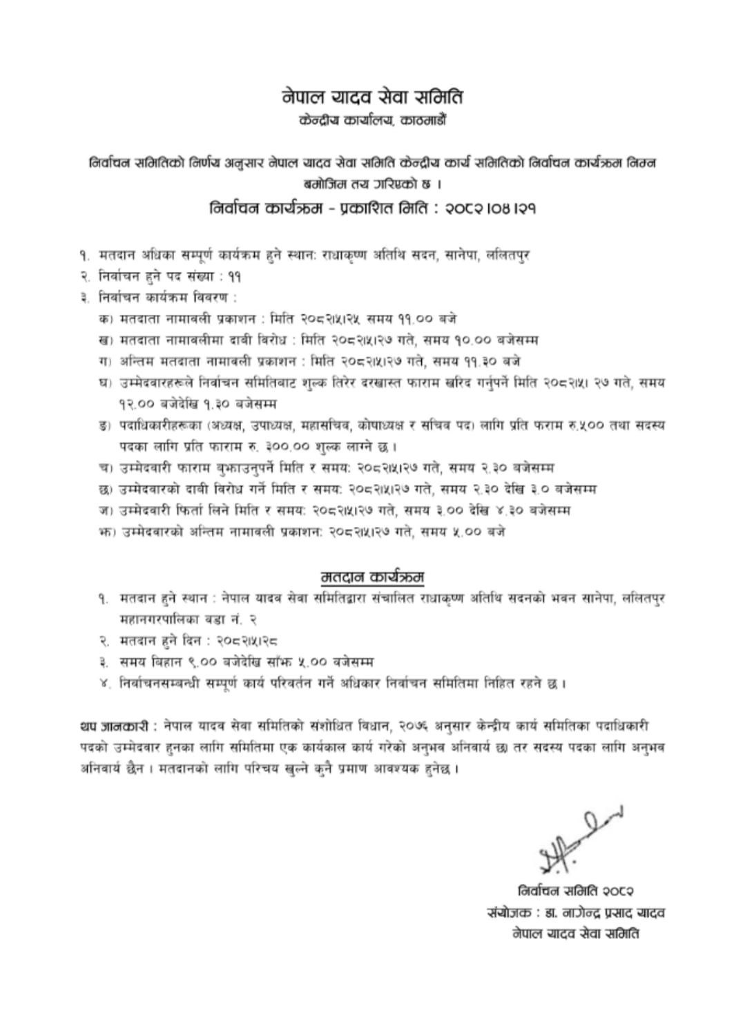 नेपाल् यादव सेवा समिति को निर्वाचन कार्यक्रम प्रकाशित मिति :- २०८२-४-२१ गते्